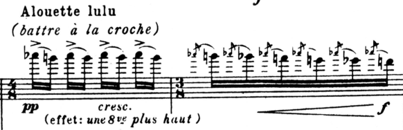 (Messiaen’s notation, the seventh bar after Figure 3, Eb clarinet.)