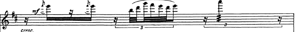 3. For a flourish, the notation is usually a stream of short notes, beamed together, which must take place within the given duration. Here’s the example from Daphnis and Chloe, followed by my flute rendition.